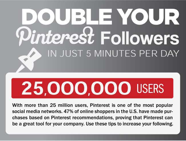 Doubling your Pinterest followers — or any followers — is no small feat. So, in my opinion, the jury is still out on whether it can be done in five minutes, as this infographic promises. But that doesn’t change the fact that this is one of the most thorough, helpful infographics I’ve ever seen about Pinterest.