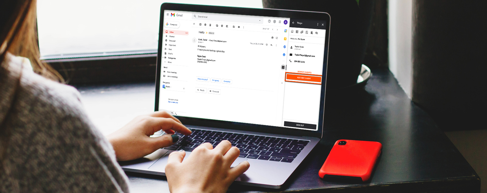 Adding client information from Gmail to Thryv is as simple as a click. This saves time on duplicate data entry and helps you avoid errors, so you have one source of truth for your client information.