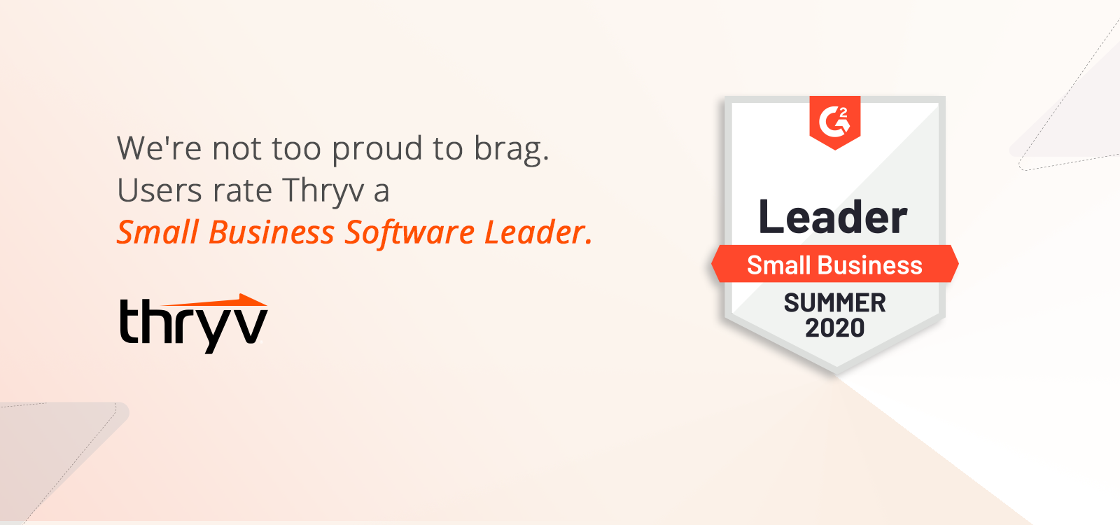… you really, really like us! In fact, Thryv users specifically helped us achieve Leader awards in these small business categories: Overall Small Business Software, Easiest Admin, Best Support and Easiest Set Up.