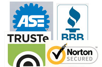 Image: Seals from National Institute for Automotive Service Excellence, Better Business Bureau, TRUSTe and Norton (Symantec)