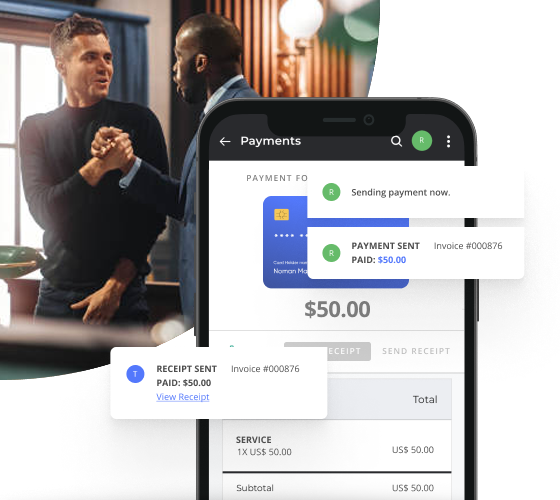 Create professional estimates and invoices. Process payments online or on the spot.